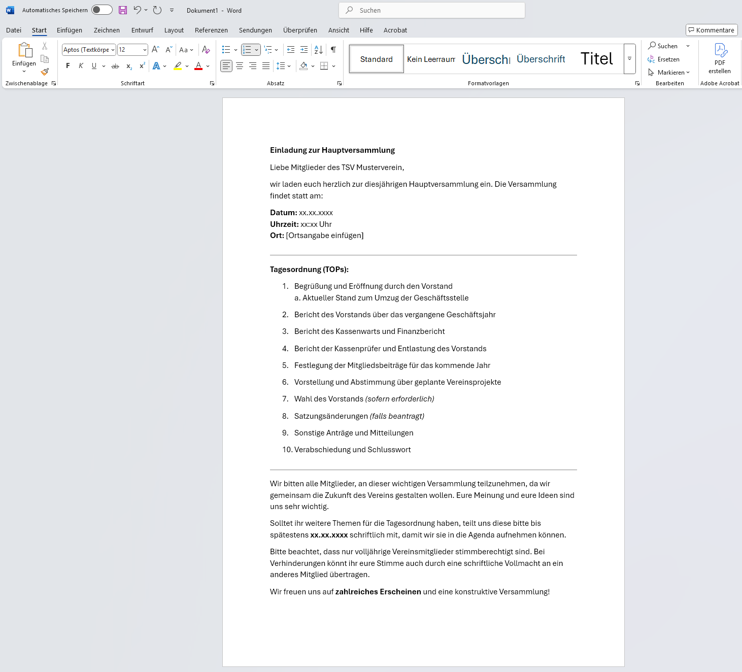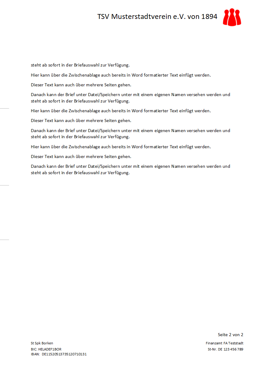 Dieser Musterbrief ist die ideale Vorlage für neue Briefe. Einfach die Vorlage anpassen und unter einem neuen Namen abspeichern.