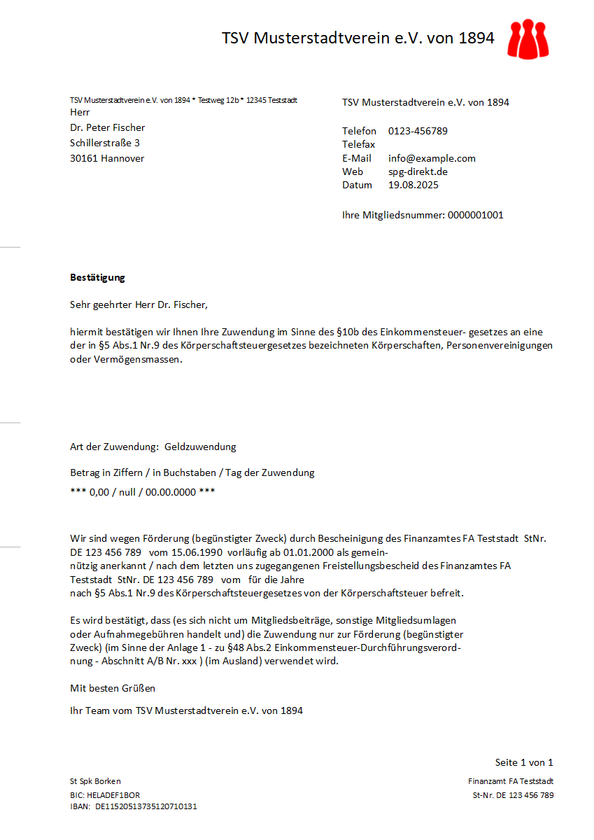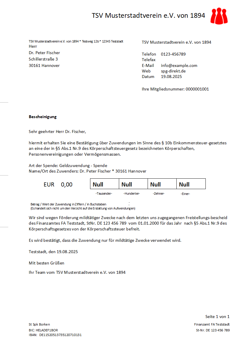 Achtung: Normalerweise keine Briefe, sondern die Formulare für Zuwendungen nutzen