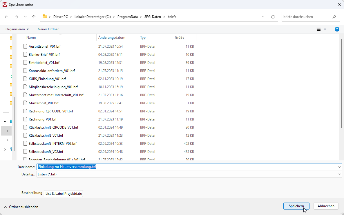 Mit Datei > Speichern unter wird jetzt der neue Brief gesichert: