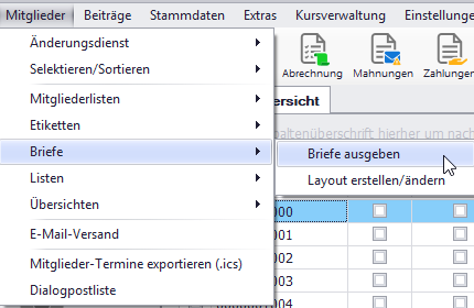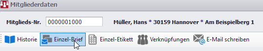 Rufen sie das Mitglied aus der Übersicht auf und gehen auf Einzel-Brief