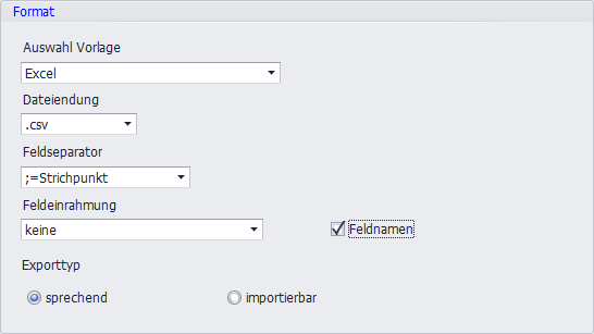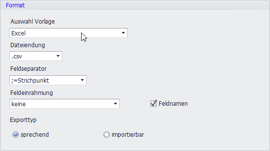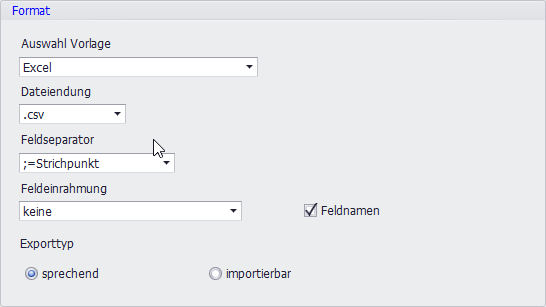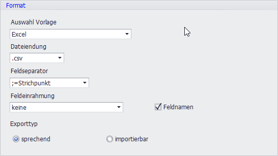 Im Bereich Format können Sie Einstellungen zu dem Exportformat vornehmen:
