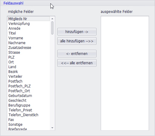 Über die Feldauswahl können Sie die Spalten für den Export wählen: