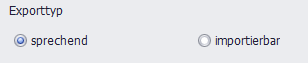 Für einen sprechenden Exporttyp können Sie die Einstellungen belassen. Aktivieren Sie importierbar, wenn Sie den erstellten Export für einen künftigen Import nutzen wollen.