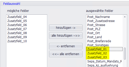 Bei den Zusatzfeldern bitte nur die exportieren, die auch in den Einstellungen - Bestand definiert wurden: