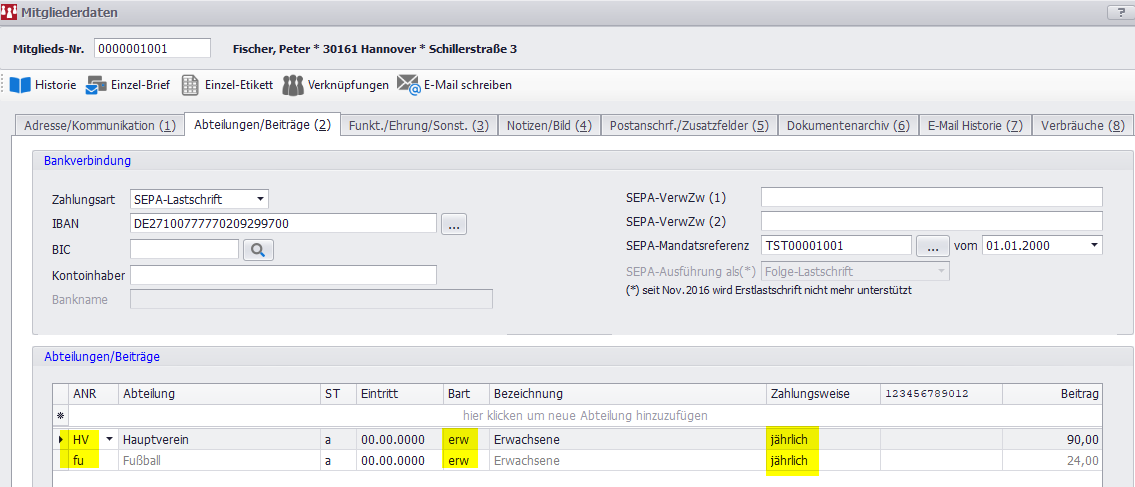 - Sind Datumswerte, Abteilungen, Beitragsarten, Zahlweisen und E-Mail-Adressen richtig angegeben?