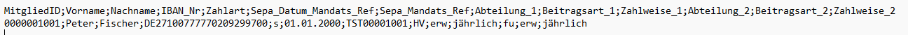 Abteilungen und Beitragsarten werden mit ihrer Nummer bzw. ihrem Kürzel angegeben und müssen vorher in SPG-Verein in den Stammdaten so angelegt sein!