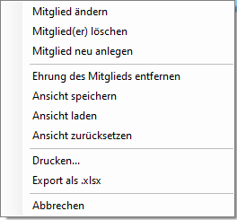 Über das Kontextmenü können Sie die aktuelle Ehrungsliste exportieren.