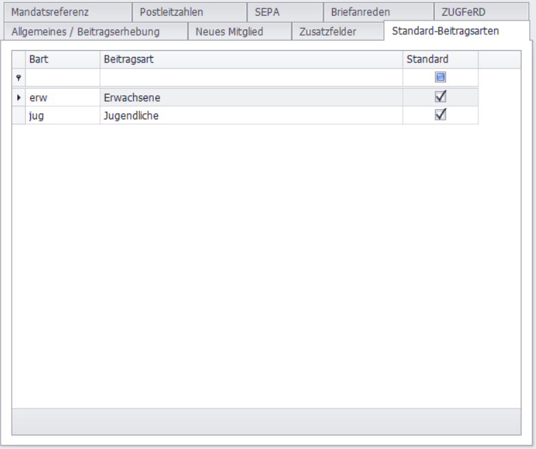Standard-Beitragsarten