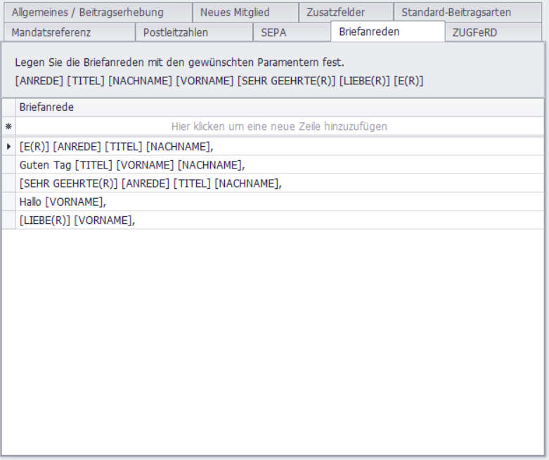 Sie können individuelle Briefanreden definieren, die Sie innerhalb Ihrer Anschreiben hinterlegen können.