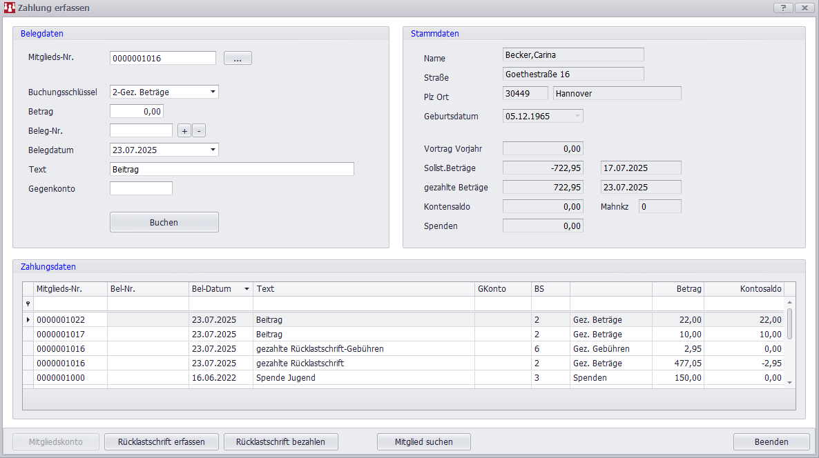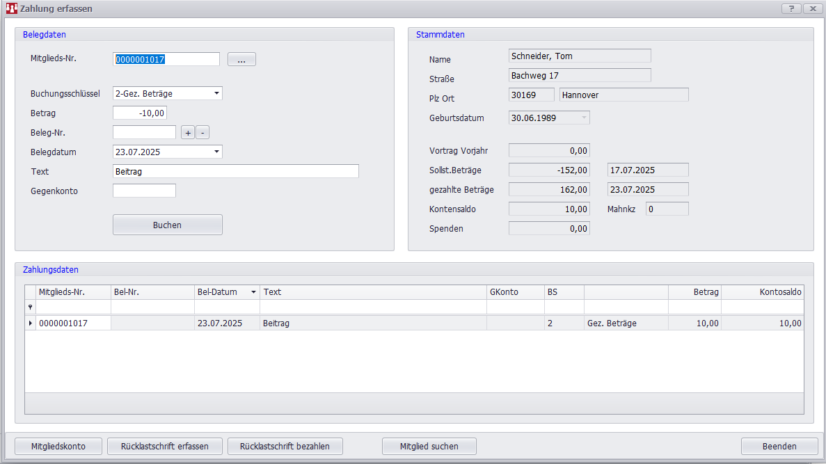 Über die Funktion Doppelbelegung prüfen stellen Sie sicher, dass jede Mitgliedsnummer eindeutig vergeben wird.