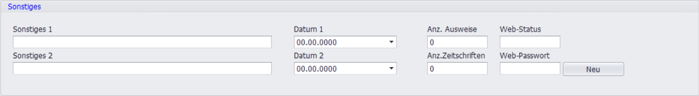 Verwenden Sie bei den Freifeldern eine systematische Verschlüsselung (z. B. vorangestellte Nummern), wenn Sie Daten später selektieren möchten. Die Felder Anzahl Ausweise und Anzahl Zeitschriften unterstützen gezielte Serienbrief- und Versandaktionen für Familien.