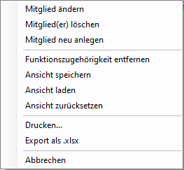 Wenn ein Mitglied eine Funktion nicht mehr ausübt, können Sie die Zuordnung über das Kontextmenü löschen.