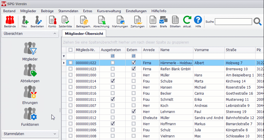 Die Daten werden automatisch aus den Mitgliedsdaten übernommen und laufend aktualisiert.