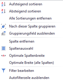 Das Kontextmenü der Übersicht rufen Sie auf, indem Sie mit der rechten Maustaste auf eine Spaltenüberschrift klicken.