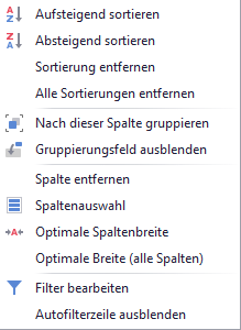 Gesetzte Filter können über das Kontextmenü wieder entfernt werden.