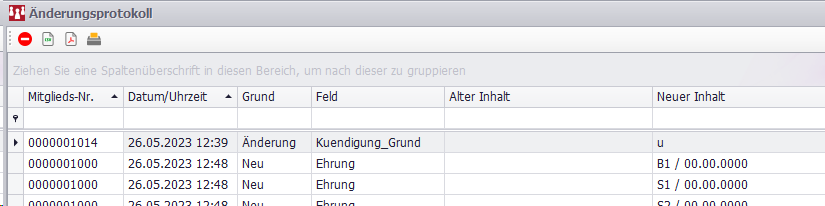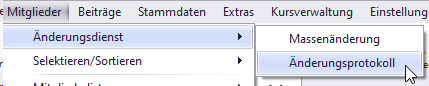Über Mitglieder/ Änderungsdienst/ Änderungsprotokoll kann man sich die erfolgten Änderungen an den Mitgliedsdaten anzeigen lassen: