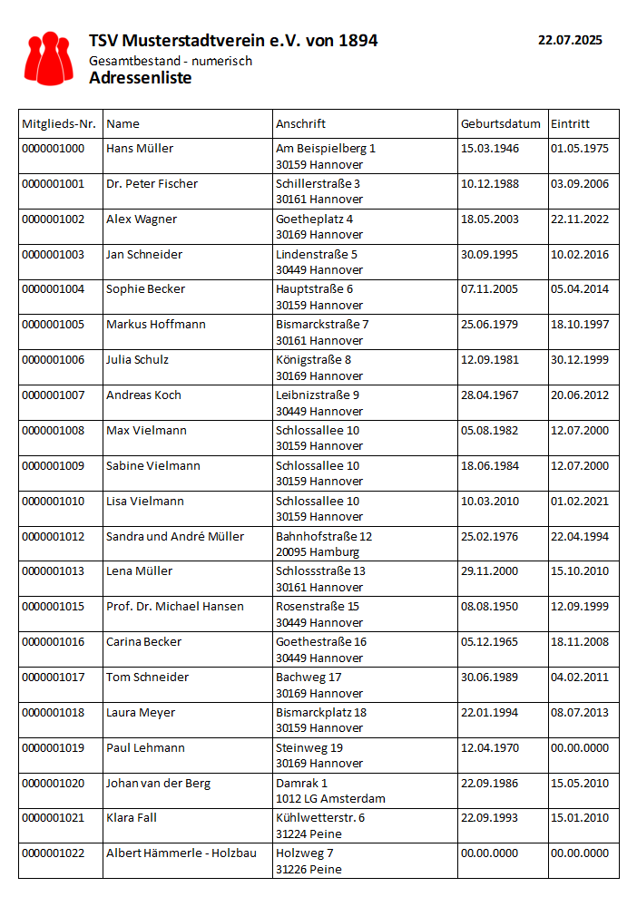 Gesamtbestand: Alle Mitglieder werden in die Liste aufgenommen.