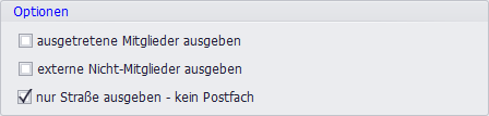 Bestimmen Sie unter Optionen, ob auch ausgetretene, externe oder nur die Straße ausgegeben werden soll. | |