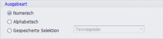 Bestimmen Sie die Sortierung oder Selektion für die auszugebenden Listen: