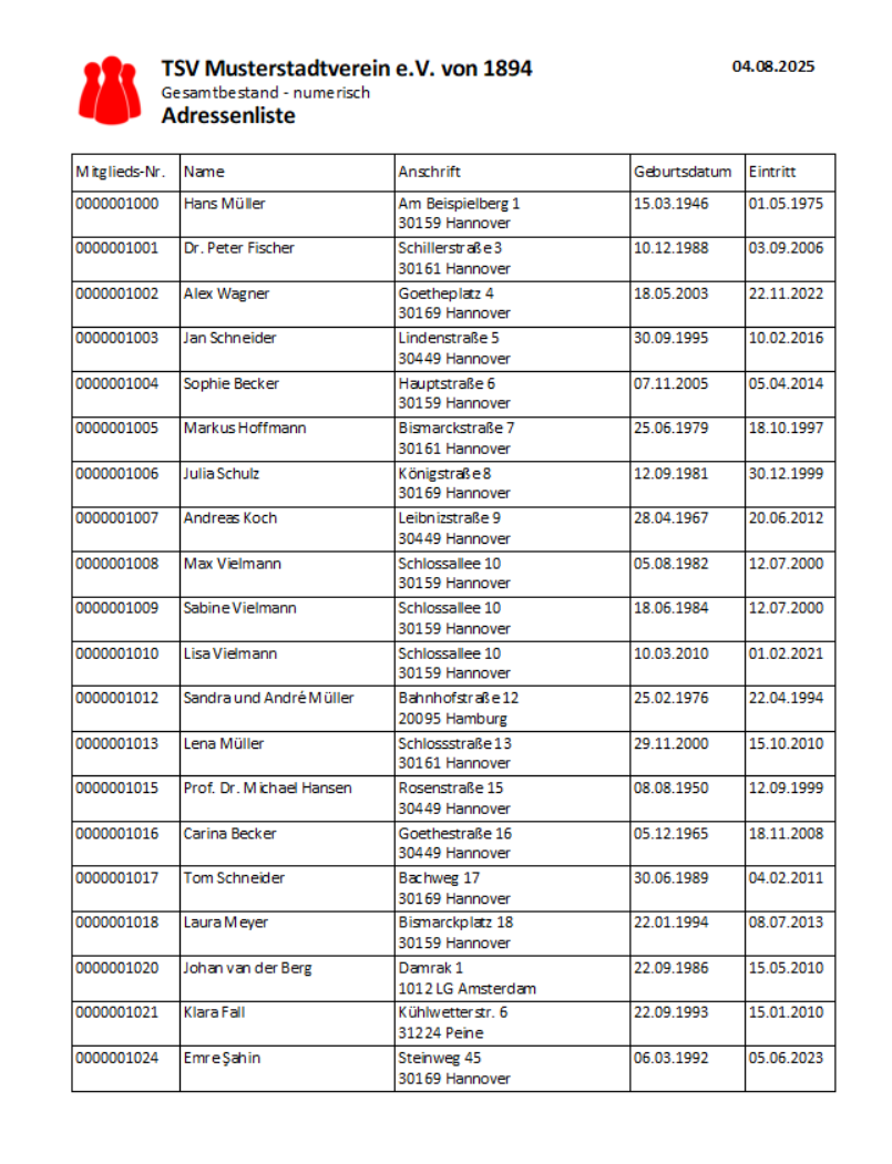 Gesamtbestand: Es werden Briefe für alle Mitglieder erstellt.
