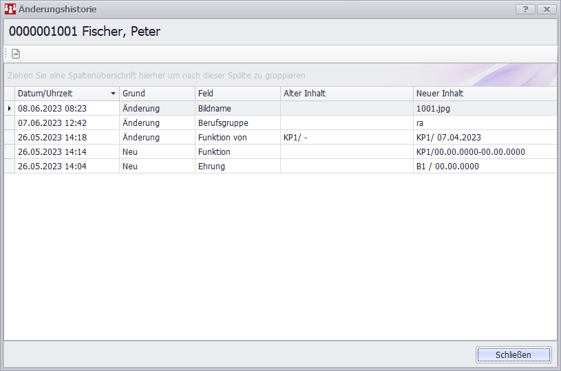 Historie: Zeigt frühere Änderungen am Datensatz an.