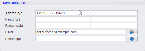 Hier finden sich alle Kontaktmöglichkeiten des Mitglieds, wie Telefonnummer, Handynummer, E-Mail-Adresse und Homepage.