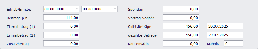 - Sollst.Beträge: Die Summe aller Forderungen an das Mitglied (z. B. fällige Beiträge).
