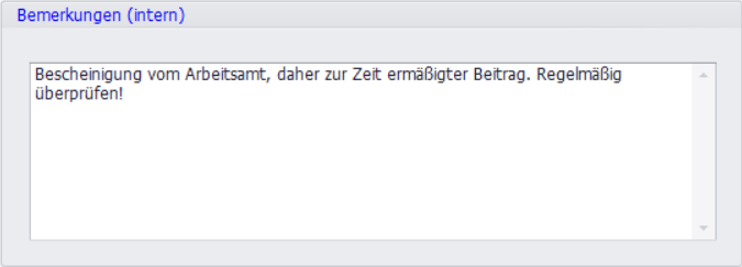 Internes Textfeld für besondere Hinweise oder Besonderheiten eines Mitglieds.