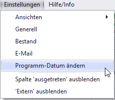 Menüleiste: Einstellungen > Programm-Datum ändern