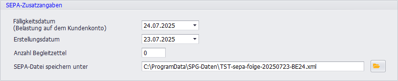 SEPA-Datei Fälligkeit und Erstellungsdatum