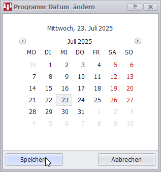 Setzen Sie das Programmdatum auf das gewünschte Datum und klicken Sie auf Speichern