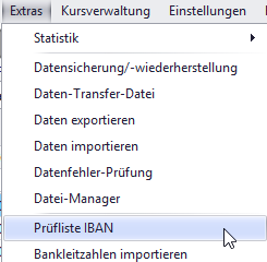 Menüleiste: Extras > Prüfliste IBAN