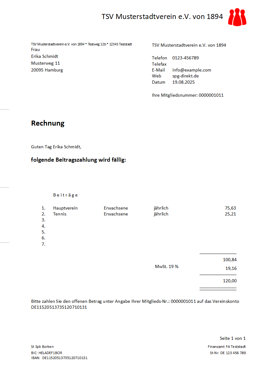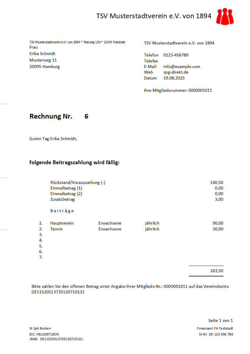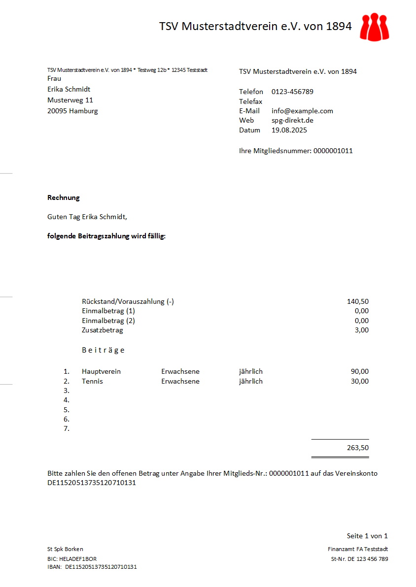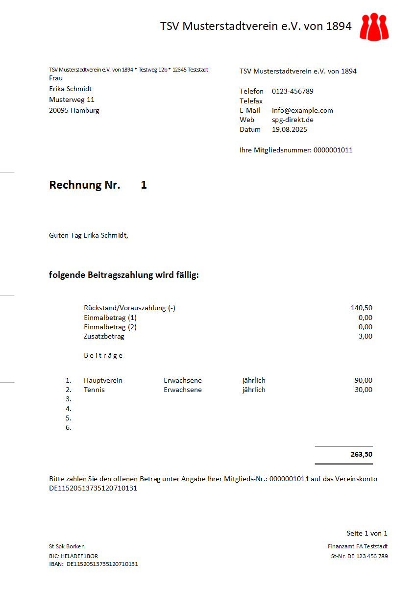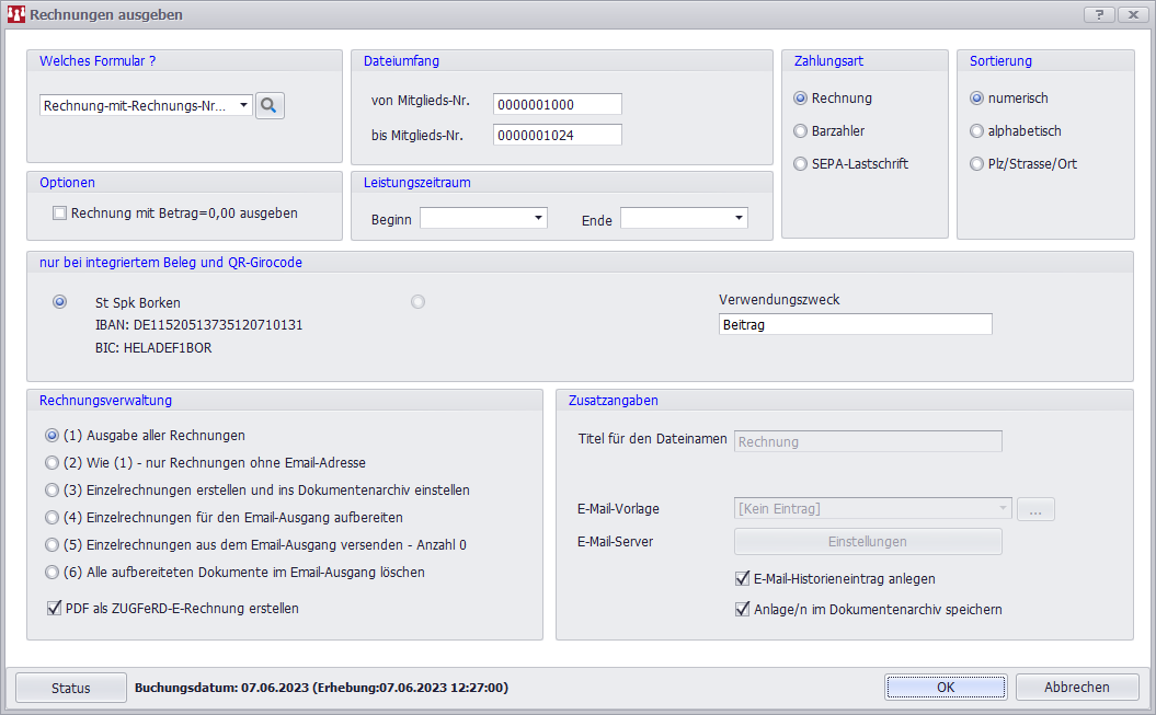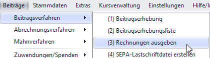 Beiträge > Beitragsverfahren > Rechnungen ausgeben