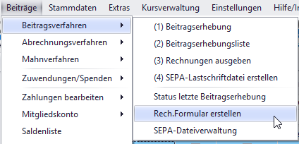 Beiträge > Beitragsverfahren > Rech.Formular erstellen