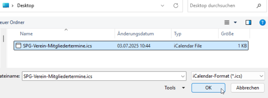 Innerhalb des Ordners finden Sie die Datei SPG-Verein-Mitgliedertermine.ics