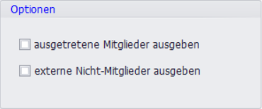 Unter Optionen besteht die Möglichkeit, zusätzlich ausgetretene Mitglieder sowie externe Nicht-Mitglieder in den Export einzubeziehen. | |