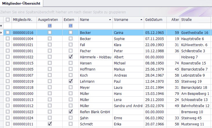 Der Beispielbestand enthält unter anderem folgende fiktive Daten: