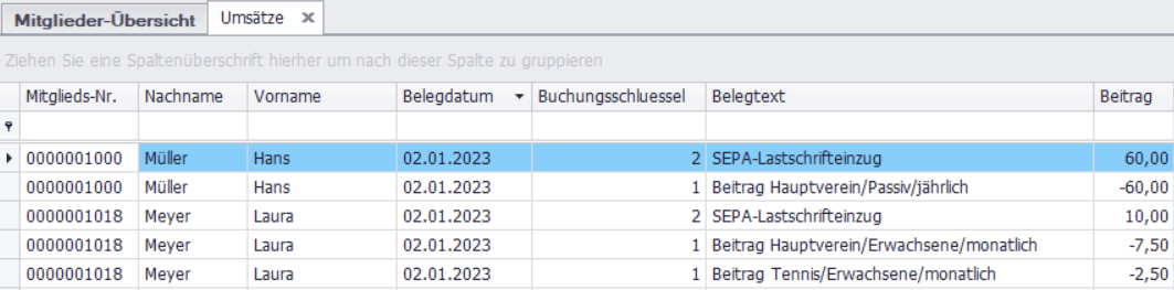 Unter Umsätze finden Sie eine Übersicht über alle Umsätze auf Mitgliederebene.