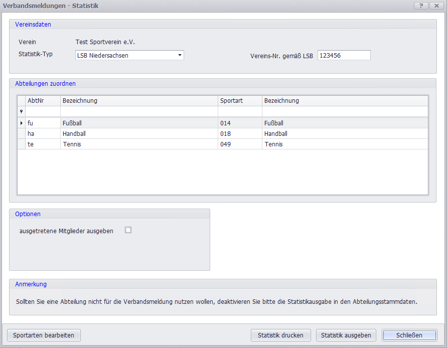 Beispiel: Manche Landessportbünde möchten, dass auch passive Mitglieder oder Ehrenmitglieder gemeldet werden. Oft wird dafür die Sportart-Nr. 99 verwendet.