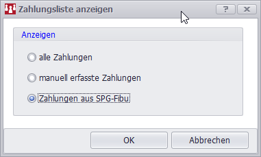 Zahlungen aus SPG-Fibu: Zeigt nur Zahlungen, die aus dem Finanzbuchhaltungsprogramm SPG-Fibu importiert wurden.