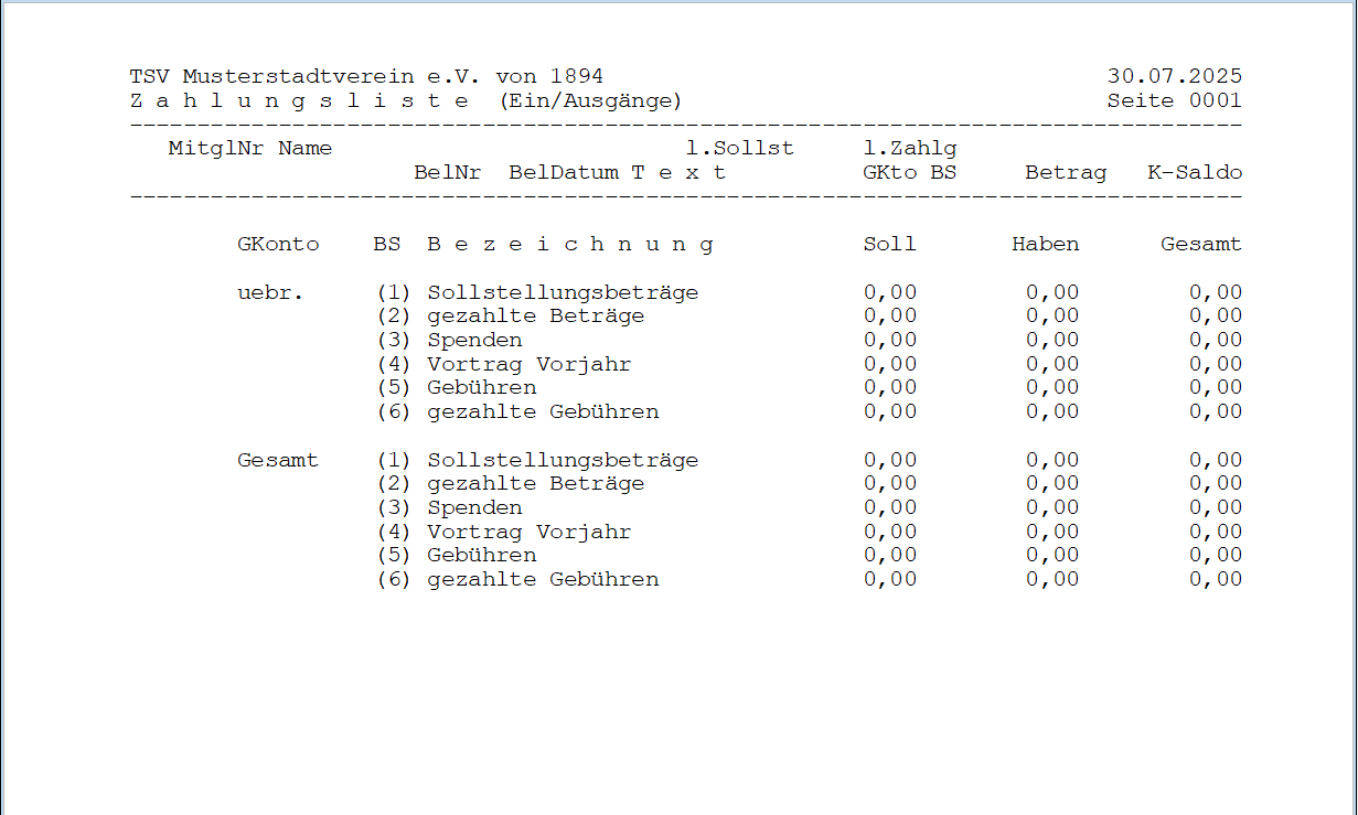 BS (2) gezahlte Beträge: Beträge, die von einem Mitglied bezahlt wurden (Guthaben).